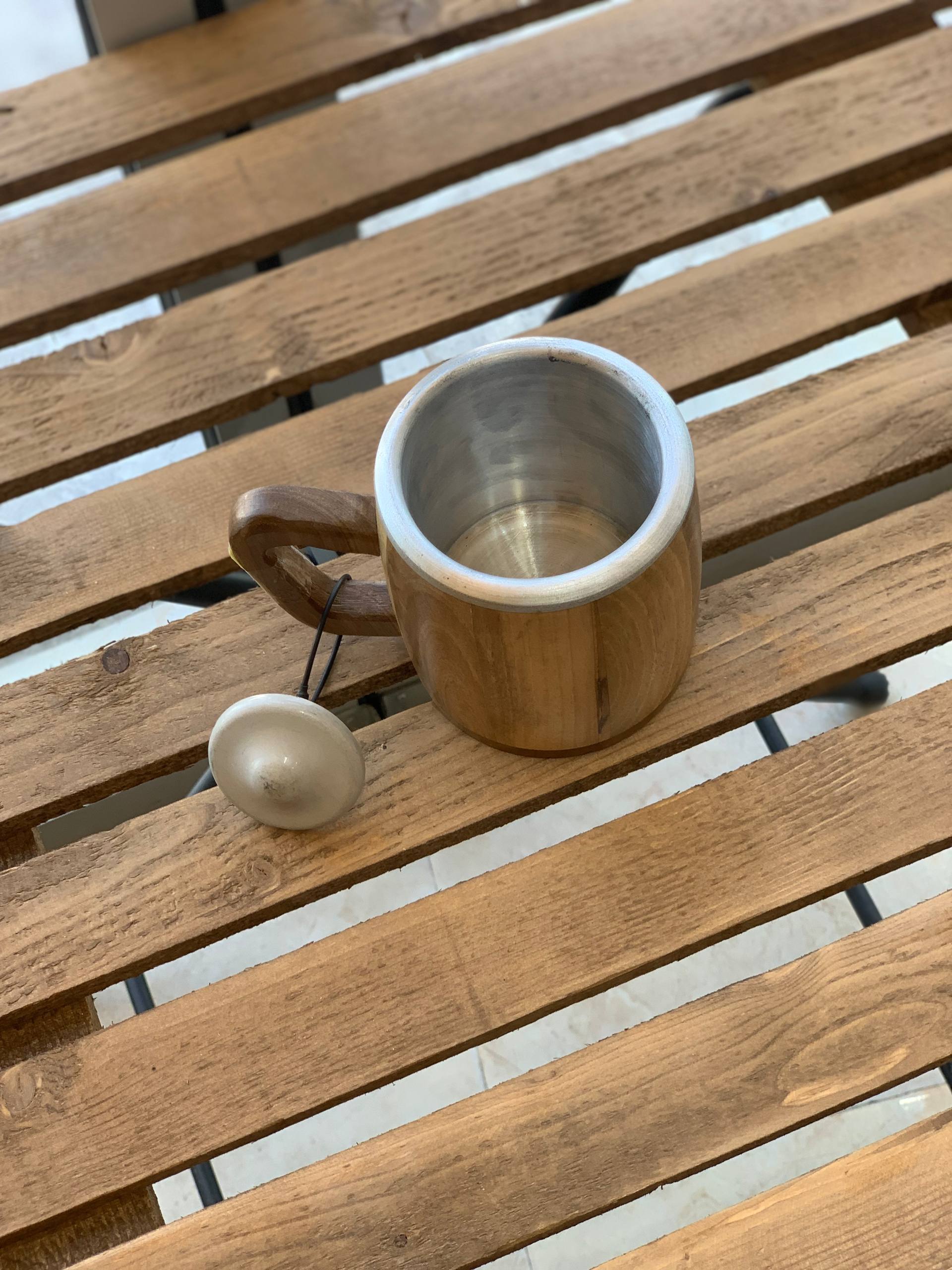 > ماگ چوبی روکش فلز سایز کوچک مدل R106